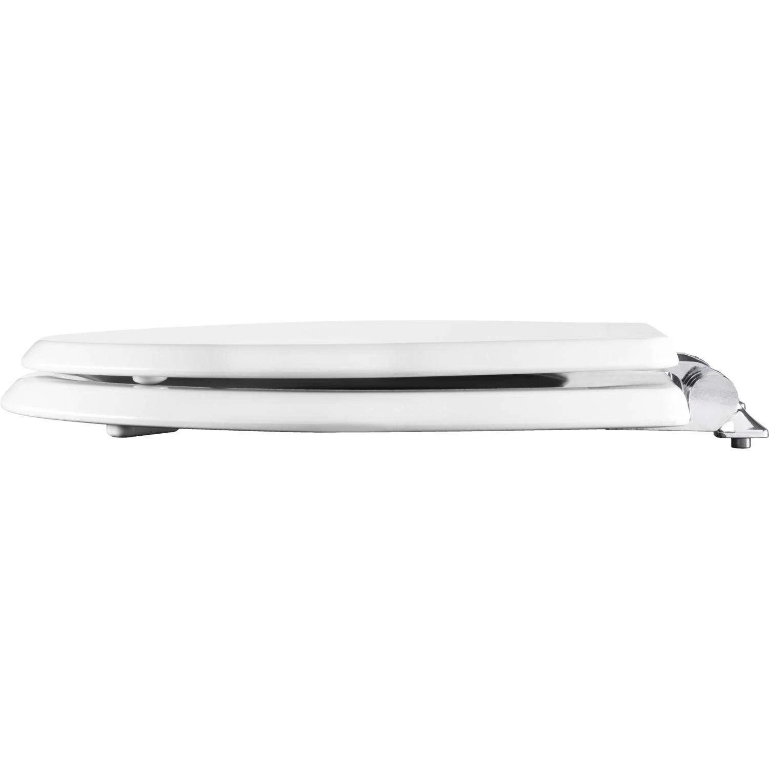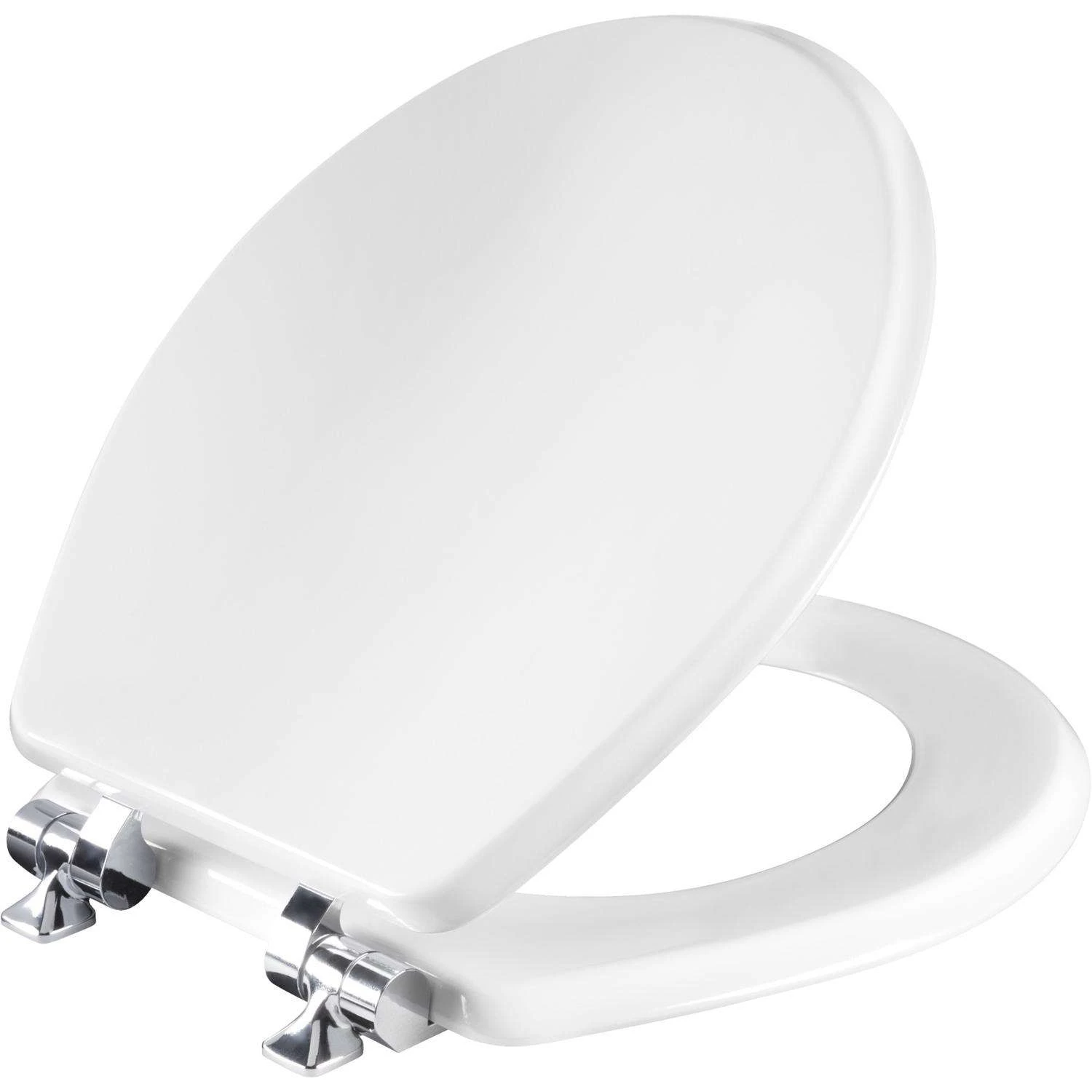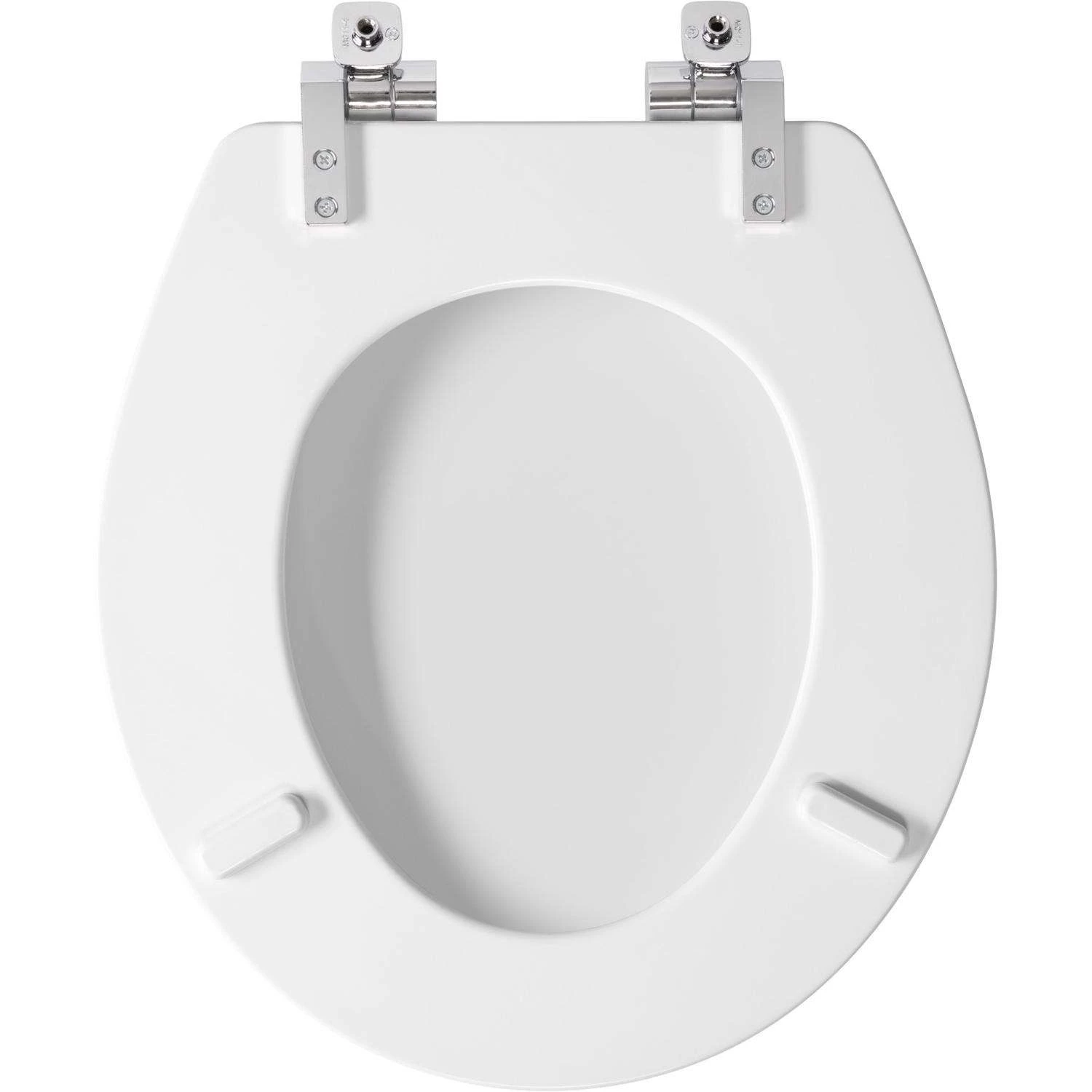 This Mayfair Benton enameled wood seat in White features a polished design and chrome hinges that complement bath decor. The STAY TITE Seat Fastening System installs easily and keeps seat securely attached to the bowl. The Whisper Close feature closes slowly and quietly, eliminating slamming and pinched fingers. Superior, high-gloss finish adds beauty to your decor while resisting chipping and scratching. Stylish chrome hinges complement bath hardware or decor STAY TITE Seat Fastening System Never Loosens, installs with ease Whisper Close hinge slowly and quietly closes, eliminating slamming and pinched fingers Durable, enameled wood with superior high-gloss finish resists chipping and scratching Color-matched bumpers Fits most manufacturers’ round toilets Proudly Designed and Assembled in the USA Made with eco-friendly materials and processes